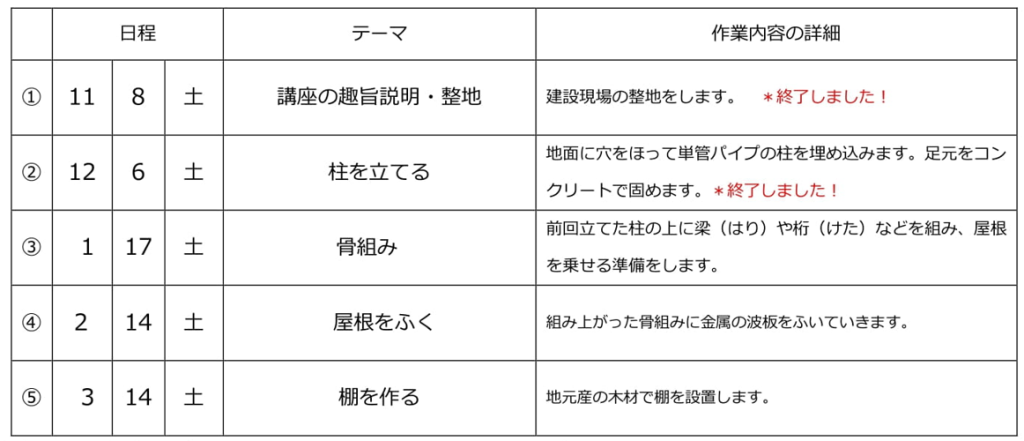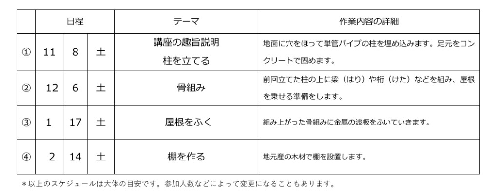 対象 高校生以上で里山再生のDIYに関心があり、なるべく全日程に参加できる方 *初心者歓迎!